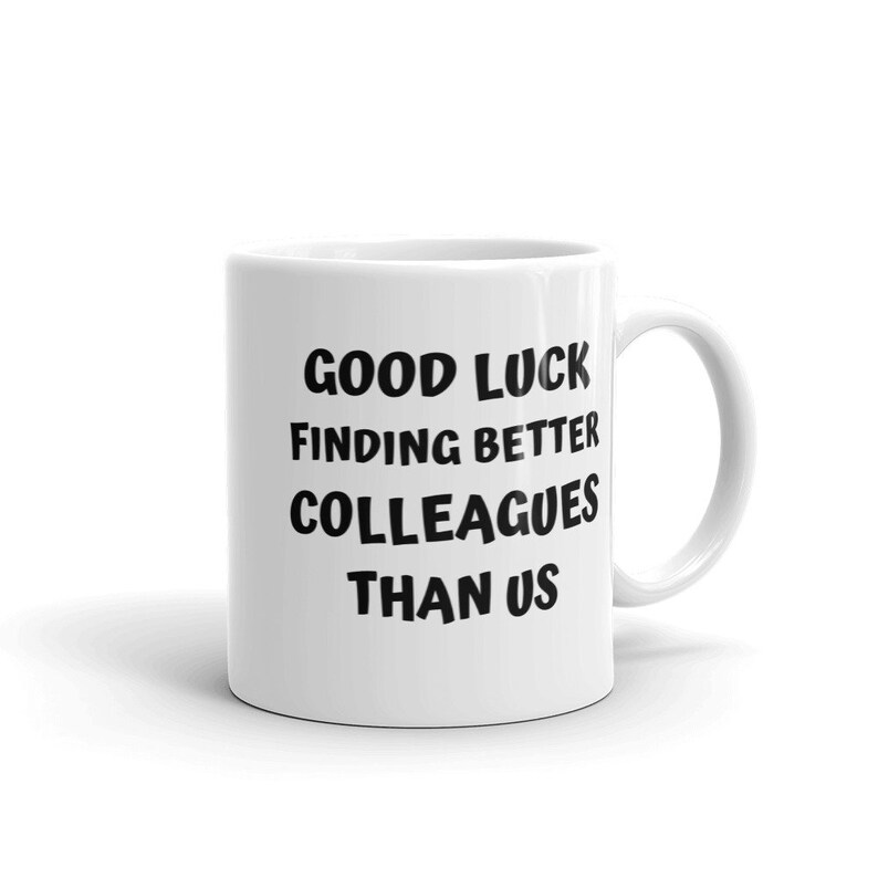 Good luck finding better colleagues than us funny 11oz ceramic mug leaving gift xmas christmas secrete santa.